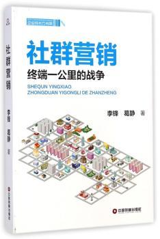 图书简介 | 本书共分为七章,采用图文并茂的表现方式,从进入社区的方式方法,到营销活动的调查、策划和准备,再到活动的开展、互动,以及最后的活动效果的长期维持。全程为您展现社群营销的方方面面,并进行细致入微的介绍。本书还专门展开一章着重介绍了网络社群营销,详细叙述了在网络时代社群营销的新平台、新方式,使您能结合线上及线下同时铺开营销活动,从而取得更理想的营销效果。 |