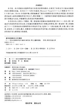 图书简介 | | 本书共分为8章4个附录。第1章总体介绍面向对象程序设计和C++语言;第2章通过和传统程序设计的比较,介绍面向对象程序设计的概念和特性;第3至8章,详细阐述了C++支持的面向对象程序设计的基本方法,包括C++语言基础、类、对象等。 |