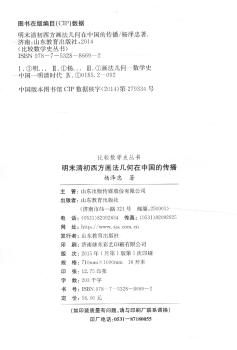图书简介 | | 本书在前人研究的基础上对这个时期西方早期画法几何知识的东来及其在我国的传播进行了较为深入的探讨,着重分析了利玛窦、汤若望、郎世宁、熊三拔、徐光启、李之藻、梅文鼎和年希尧等人的相关工作,阐述了他们各自的突出贡献等。 |