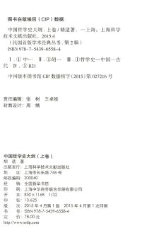 图书简介 | | 本书共分为三卷,本册为上卷。主要内容包括:中国哲学发生的时代;老子;孔子;孔门弟子;墨子;杨朱;别墨;庄子;荀子以前的儒家;古代哲学之终局等。 |