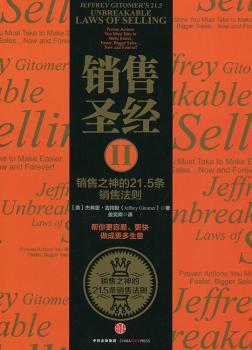 图书简介 | | 《销售圣经》的作者杰弗里将自己的销售知识和销售成就精炼成21.5条销售铁则,成就了《销售圣经2》这些法则不仅是不证自明的真理,更是帮助你提升销售业绩的踏脚石。杰夫里的21.5条销售法则决定了你的事业成功与否,决定了你能够赚到足够的钱来享受你理想中的生活或是入不敷出。 |