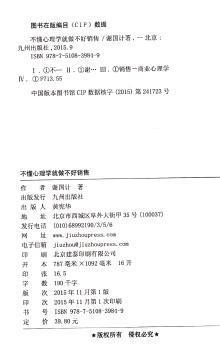图书简介 | | 本书主要内容包括:销售就是心与心的较量;客户为什么要和你成交;是什么扰乱了客户的心智;心理认同术——拉近与客户的心理距离才能赢得客户;心理暗示术——赢单的关键是让客户不知不觉说“是”等。 |