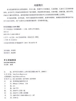 图书简介 | | 本书是国家特色专业建设教材,共分七章,包括手工印染概述、扎染图案、扎染的工艺流程和蜡染等章节内容。全书对手工印染的各种技法作了较为规范、系统和科学的阐述,内容丰富、注重实践、图文并茂,并配以大量的范例作品,能够使读者在较短的时间内掌握手工印染的实质与工艺要领。 |