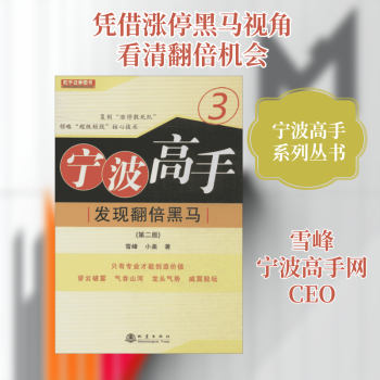 图书简介 | | 《宁波高手》系列共四本,本书为第三本,作者以如何发现并捕捉翻倍黑马股为主题,全书共分三个部分。上篇宁波高手经典投资理念,主要讲述宁波高手投资的核心理念;中篇建立稳赚交易系统,主要讲述通过各种技术指标来判断捕捉翻倍黑马股;下篇宁波高手资本翻倍核心技巧修炼,主要讲述超短线的看盘及操盘技巧。 |