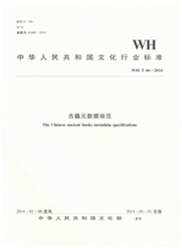 中华人民共和国文化行业标准古籍元数据规范:WH/T66-2014