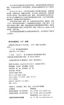 图书简介 | | 本书主要介绍金属及其合金的化学成分、组织结构和性能之间的内在联系以及在各种条件下的变化规律,为后续的专业课程的学习打下良好的基础。全书共分10个单元,主要介绍金属的力学性能、金属及合金的结构和结晶、铁碳合金、金属塑性变形与再结晶、钢的热处理、工业用钢、铸铁、非铁金属及合金等。每单元后面都附有单元小结及可供选做的综合训练,以利于读者掌握、理解知识,提高解决实际问题的能力。 |