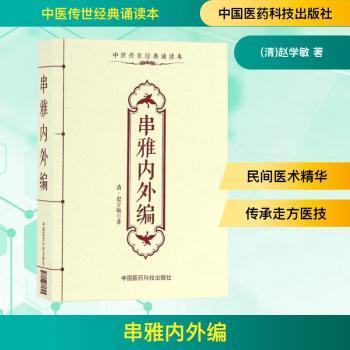 图书简介 | | 本书共八卷,分《串雅内编》四卷、《串雅外编》四卷。其中《串雅内编》介绍了“顶、串、截”三大法,以及某些单方。《串雅外编》则分禁方(符咒之类)、选元(各种急症抢救法)、药外(非药物疗法)、制品、医外等类。 |