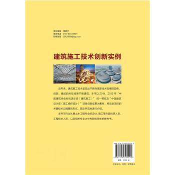 图书简介 | | 本书以2014年和2015年“中国建筑学会科技进步奖(建筑施工)”一等奖及“中国建筑设计奖(施工组织设计)”项目创新成果为素材,将这些项目的关键技术以摘要的形式,图文并茂地进行介绍。 |