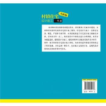 图书简介 | | 本书系统讲述了住宅设计施工相关知识,分为建造选址、建筑设计与施工、建筑材料和生活配套设施等几个环节,附带一整章的村镇住宅设计施工图纸。主要包括:村镇住宅状况、村镇住宅形式、住宅建造选址、整体规划、地基结构等。 |