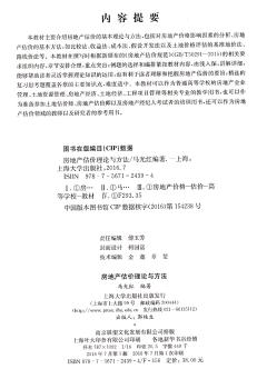图书简介 | | 本书主要介绍房地产估价的基本理论与方法,包括对房地产价格影响因素的分析、房地产估价的基本方法,如比较法、收益法、成本法、假设开发法以及土地价格评估的基准地价法等。 |