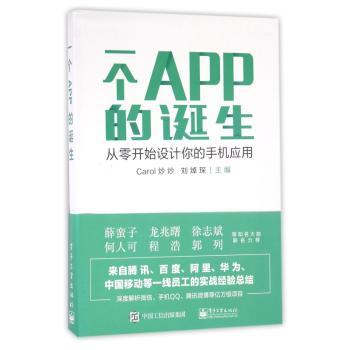图书简介 | | 本书主要呈现的就是一个APP从无到有的过程,从市场调研,竞品分析开始,到设计规范,界面图标,设计基础,流程管理,开发实现,服务设计,跨界融合,最后到市场推广,都有陈述。 |