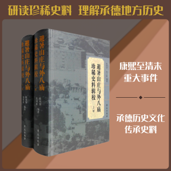 图书简介 | | 本书收录了避暑山庄和外八庙珍稀史料52种,这些史料是研究避暑山庄和外八庙最主要的、不可或缺、非看不可的史料。这些史料编选角度独特,内容独到,侧重于历史内容方面文献,有关园艺和古建技术类的暂不收录主要特点一、编选角度独特一个地方的历史文化是当地自然和人文历史的总和,从避暑山庄和外八庙的建造历史,建筑设计思想和建筑内容、功能要求等许多方面,都能深刻体会到这一点。 |