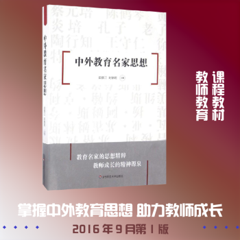图书简介 | | 《中外教育名家思想》介绍中外教育史上孔子、老子、朱熹、王守仁、蔡元培、陶行知、黄炎培、晏阳初、陈鹤琴、徐特立、苏格拉底、夸美纽斯、卢梭、裴斯泰洛齐、赫尔巴特、蒙台梭利、杜威、赞可夫、苏霍姆林斯基、罗杰斯共20个杰出教育家教育思想及其教育实践方面的贡献。 |