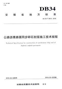 安徽省地方标准公路沥青路面同步碎石封层施工技术规程:DB 34/T 2615-2016