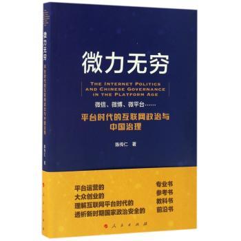 图书简介 | | 本书将在这样的背景下全面概括在“微”时代下的中国治理,将其形容成“微力无穷”,并深入阐述“微”力将如何达到改变信息传播,颠覆商业模式,创新社会治理,影响政治安全和重塑世界格局的效果。这是国内少有的一部全面总结微时代、平台时代的研究著作。 |