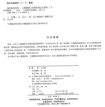 图书简介 | | 本书是一本关于人像摄影与后期处理的教程图书。全书共分为5章:第1章讲解了人像摄影基础知识,其中包括相机的参数设置、相机的使用技巧及画面的构图,内容通俗易懂;第2章至第5章分别介绍了清新人像、唯美人像、私房人像及校园人像的实拍与后期处理,每一个案例都从场地、服装造型、用光等层面进行解析。本书中的摄影案例与后期处理案例十分丰富,层层递进,逻辑性强,有利于读者学习。 |