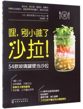 图书简介 | | 食材混搭,潮范十足,美味独特,颜值爆表,健康营养,吃相优雅,这就是轻食主义者的新宠——玻璃罐上班沙拉。用身边的3-4种食材,切成一口食大小,一目了然地装入玻璃罐中,美观的同时,各种食材悄悄地发酵着时尚的味道。玻璃罐密封效果较好,可让蔬菜长时间保持爽脆口感,依照食谱加入鱼、肉等食材,更能均衡每天所需的营养。可以事先做好存放,方便食材入味,味道和口感都会产生奇妙的变化。适合工作压力大,又希望享受健康午餐的上班族。在繁忙工作的间歇,享受一份清新的午餐或下午茶,每一口都能吃到蔬菜,每一天都优雅地生活。54款沙拉,搭配20款自制低脂沙拉酱,从周一到周五,不间断地享受上班沙拉吧。 |