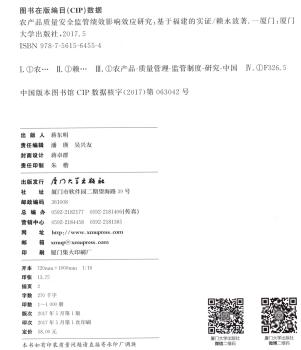 农产品质量安全监管绩效影响效应研究:基于福建的实证:based on the empirical analysis in Fujian