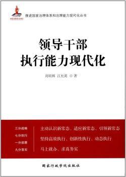 图书简介 | | 本书共八个部分,分别就领导干部的执行能力以及执行能力、学习认知能力、共建愿景能力、资源整合能力、组织整合能力、制度执行能力、激励管理能力的现代化等方面作了系统而详细的阐释。全书内容丰富又详略得当,是推进新形势下领导能力现代化的重要学习读物。 |