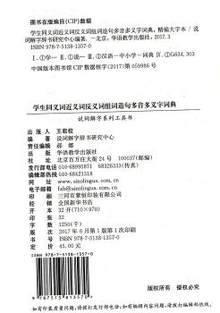 图书简介 | | 本词典共收录常用字3000余个,总词条约28000条,主词条8000余条,同义词、反义词20000余组,组词2500余条,例句8000余条,近义词辨析900余组。收录以双音节词为主,酌情收录部分常用成语,基本涵盖了全国各版本语文教材中经常出现的词语。 |
