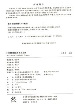 图书简介 | | 本书介绍了3D打印件的后处理和3D打印技术的具体应用。后处理方面介绍了主要的3D打印方法后处理的目的,具体操作过程和要求。3D打印技术的应用方面着重介绍了在未来更有发展前景的方向,如工业与艺术设计、首饰设计与制造、医疗和生物等。 |
