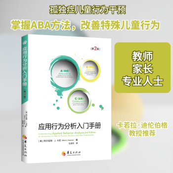 图书简介 | | 本书阐明了ABA的基本术语、重要原则和常用程序。作者在书中解释了组成ABA基本程序的各种学习和强化过程,描述了如何有效地把行为分析科学地应用于现实生活中,包括常用于孤独症和有其他特殊需要的儿童的评估和干预技术。本书还阐述了ABA在行为教育中的应用,比如精准教学和程序教学。 |