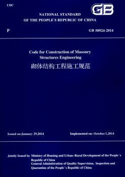 图书简介 | | 2016年9月30日,住房和城乡建设部发布了关于《混凝土结构工程施工质量验收规范》等20项工程建设标准英文版的公告(第1323号),本书是《砌体结构工程施工规范》GB50924-2014的英文版。当英文版与中文版出现异议时,以中文版为准。 |