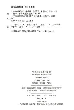 图书简介 | | 本书以通俗性、科普性的语言,介绍北京京西稻作文化系统的区域重要性、生态与文化特征与价值、保护与发展理念及措施,并以附录形式介绍遗产历史脉络及实用性旅游资讯等内容。 |