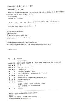 图书简介 | | 《建筑四书》是文艺复兴时期最重要的建筑理论著作之一。本书共分为四大部分,书后附有注释、意英专用词汇表、参考文献、索引等内容。 |