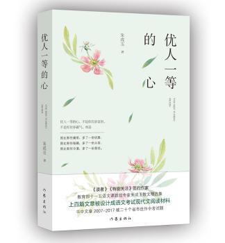 图书简介 | | 朱成玉散文精选集。分为六辑,收录朱成玉散文代表作80余篇。所收录文章,每篇都来源于生活中的细节,其内涵又高于生活,寓意深刻发人深省,从细微处感动每个人。朱成玉的文章或撷取生活中的细节,以小见大;或写下某些被我们完全忽略却兀自绽放的另一种精彩人生。 |