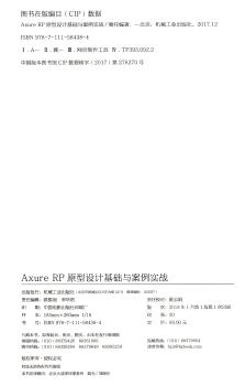 图书简介 | | 本书共12章,通过介绍Axure RP基础、样式设置、交互动画、数据操作、母版、元件库和团队协作等内容,可以让读者全面、深入地掌握Axure RP的运行原理和各项功能。 |