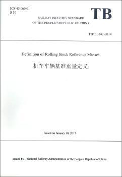 图书简介 | | 本书为《机车车辆基准重量定义(TB/T 3342-2014)》的英文翻译版《Definition of Rolling Stock Reference Masses》。国铁科法[2017]6号。内容包括前言、范围、规范性引用文件、术语和定义、重量的确定原则等。 |