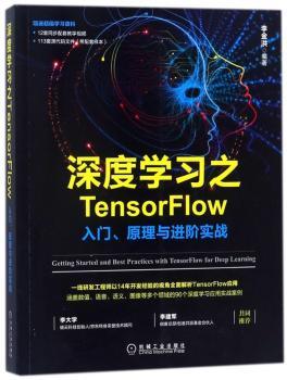 图书简介 | | 本书通过96个案例,全面讲解了深度学习神经网络原理和TensorFlow使用方法。全书共分为3篇,第1篇深度学习与TensorFlow基础,包括快速了解人工智能与TensorFlow、搭建开发环境、TensorFlow基本开发步骤、TensorFlow编程基础、识别图中模糊的手写数字等内容;第2篇深度学习基础——神经网络,介绍了神经网络的基础模型,包括单个神经元、多层神经网络、卷积神经网络、循环神经网络、自编码网络等内容;第3篇深度学习进阶,是对基础网络模型的灵活运用与自由组合,是对前面知识的综合及拔高,包括深度神经网络和对抗神经网络两章内容。 |