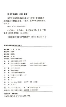 图书简介 | | 本书共分八讲,分别为提高领导能力首要的是提高政治能力、锤炼对党忠诚的政治品格、着力提升马克思主义理论素养、自觉接受党内政治生活锻炼、增强做好群众工作的本领、严格遵守党的纪律与规矩、铸造优良过硬的领导作风、在复杂斗争实践中积累政治经验。 |