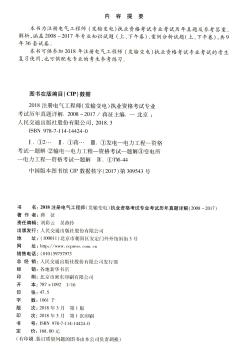 图书简介 | | 本书为注册电气工程师(发输变电)执业资格考试专业考试历年真题及参考答案、解析,涵盖2006-2017年专业知识试题(上、下午卷)、案例分析试题(上、下午卷),共9年36套试卷。 |