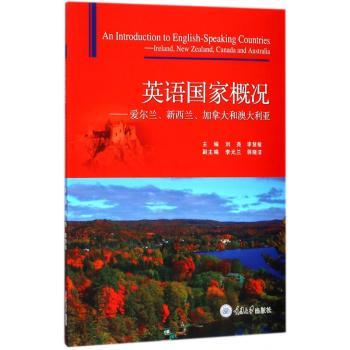 图书简介 | | 本书由四大部分组成,第一部分是爱尔兰国家概况,第二部分是加拿大国家概况,第三部分是澳大利亚国家概况,第四部分是新西兰国家概况。各部分由4-5个单元组成,主题涉及该国的地理气候、历史、人口组成、经济、教育、文学等内容。每个单元以阅读为主,阅读部分的篇幅不长、语言难度不大、重点内容突出,适合学生进行泛读练习;每单元结尾附有思考题、讨论题和选择题三类题型供学生进行自主检测,巩固所读,帮助学生提高独立思考能力。 |