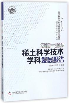 图书简介 | | 本报趋告分为综合报告、专题报告。主要内容包括:稀土科学技术学科研究进展和发展趋势;稀土地采选技术研究;稀土冶金技术研究;稀土分析化学与检测评价研究;稀土永磁材料研究等。 |