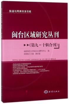 图书简介 | 闽台区域研究丛刊(第九-十辑合刊)为论文集,共收录的论文21篇。主要以福建省和台湾省之间历史文化、族谱及两岸关系问题研究为主要内容。第九辑为族谱研究,第十辑为两岸关系研究。 |