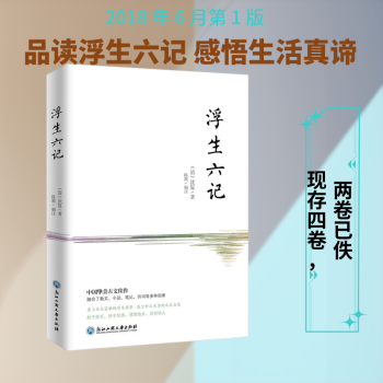 图书简介 | | 《浮生六记》是清代文人沈复写作的自传性纪实散文,分为《闺房记乐》《闲情记趣》《坎坷记愁》《浪游记快》《中山记后》《养生记道》六卷。主要记述作者夫妇平凡的家居生活和浪游各地的见闻,以及他们的坎坷遭遇,于当时世态人情也有所刻画。 |