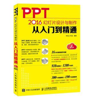 图书简介 | | 本书主要介绍PPT 2016基础入门、幻灯片制作的全新设计理念、文本型幻灯片的制作、图片型幻灯片的制作、在幻灯片中绘制图形、表格和图表巧应用、模板和母版的应用、添加动画、添加多媒体文件、交互式演示文稿的创建,以及放映、发布、打包和打印演示文稿,Word/Excel/PowerPoint协同办公、PPT综合案例等内容。 |