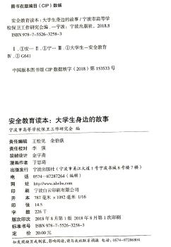 图书简介 | | 本书以“大安全观”的文化理念,从国家安全、人身安全、财产安全、心理安全、网络安全、求职择业安全、消防安全、交通安全等多个方面精选案例,尽可能为大学生提供全面丰富的防范经验和避害技巧、 |