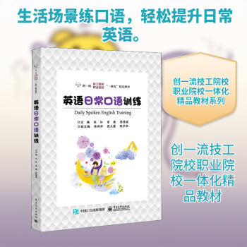 图书简介 | | 本书包括两章内容,第一章节中有两个单元,学习26个字母的书写和48个音标的正确发音技巧。第二章节共有12个单元,每单元一个口语题材,为语言活动创设职业场景,体现职业特色。学生通过单元学习掌握相关的英语知识,了解英语国家文化,开拓视野。在今后的生活和工作中具有学习和运用英语的能力。 |