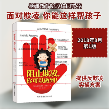 图书简介 | | 本书中还详细分析了欺凌现象中的三种角色:欺凌者、受害者和旁观者,他们各自的行为表现、心理状态以及可能的成因,帮助家长和老师如何识别谁是受害者、谁是旁观者等。本书还针对不同的读者对象,提出了具体可行的反校园欺凌建议和方案,如:教会孩子自我保护,受害者需要怎样的支持,帮欺凌者交朋友,何时应寻求专家帮助,学校如何与受害者或欺凌者进行家庭交流,如何处理受害者与欺凌者家庭之间的争端等。 |