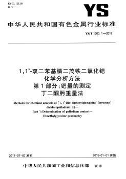 中华人民共和国有色金属行业标准1,1’-双二苯基膦二茂铁二氯化钯化学分析方法:YS/T 1200.1-2017:第1部分:part 1:钯量的测定 丁二酮肟重量法:Determination of palladium content—dimethylglyoxime gravimetry