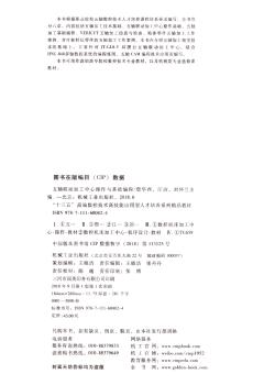 图书简介 | | 本书根据职业院校五轴数控技术人才培养课程体系编写,全书共分六章。内容包括五轴加工技术基础、五轴联动加工中心操作基础、五轴加工中心的操作基础编程、VERICUT五轴加工仿真与检查、箱体零件五轴加工工作案例、含叶轮特征零件的五轴加工工作案例。本书在介绍五轴加工相关技术的基础上,主要针对 JT-GL8-V双摆台五轴联动加工中心,结合HNC-848多轴数控系统的编程规则、五轴CAMCAM编程的技术应用而编写。 |