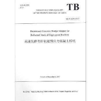 图书简介 | | 本书为国家铁路局发布英文标准。2017年第3批英文铁标。国铁科法[2017]84号文。本标准为高速铁路有砟轨道预应力混凝土桥枕(TB/T 3299—2013)的英文译本Prestressed Concrete Bridge Sleeper for Ballasted Track of High-speed Railway |