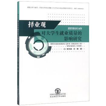 图书简介 | | 大学生就业质量是影响我国社会发展的一个重要因素,而且也已经成为社会各界关注的一个热点话题。当代大学生就业质量不一的原因有很多,其中重要因素之一就是大学生的择业观。本书通过分析大学生择业观对我国大学生就业质量的影响,以期能够对我国大学生就业问题的解决提供可借鉴之处。 |