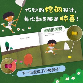 图书简介 | | 黄色的,是蝴蝶……看,草地上有只黄蝴蝶!可是哎呀,原来不是蝴蝶,是一朵小黄花!黄色的,是蝴蝶……瞧,树上有只黄蝴蝶。哎呀呀,又不是蝴蝶,是树上的大果子!一心想扑到黄蝴蝶的小朋友,为什么总是会搞错?原来,是作者五味太郎的巧思在变魔术。在书中,他挖出了很多蝴蝶形状的小洞洞,小朋友们可以和爸爸妈妈一起猜猜看,小男孩捕到的“蝴蝶”到底是什么,共同体会发现带来的乐趣。 |
