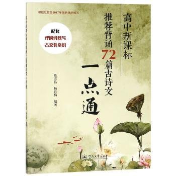 图书简介 | 本书立足于《普通高中语文课程标准(2017年版)》所附72篇推荐背诵古诗文(文言文32篇、诗词曲40首),以“原文、古文化常识、参考译文、理解默写”体例行文。全书紧贴新课标,与新高考古诗文难点、题型接轨,全面梳理原有及新增古诗文所涉知识点,在讲细、讲透基础知识的同时, 能使学生拓展思维,关联所学知识,提高应试能力,有助于学生迅捷掌握古诗文知识体系,夯实古诗文基础。 |