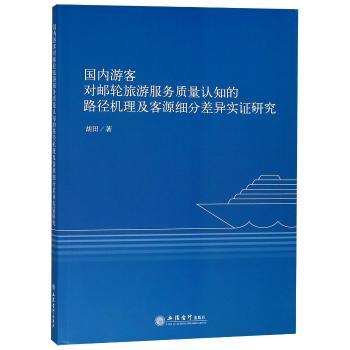 图书简介 | | 本书以国内邮轮旅游者为研究对象,对邮轮旅游服务质量维度做了探索性研究,开发出针对中国邮轮游客的邮轮旅游服务质量量表;并从管理学、经济学和社会学的视角,探讨了邮轮旅游服务质量对邮轮认知路径及机理,分析游客对邮轮旅游服务质量认知的客源细分差异。 |